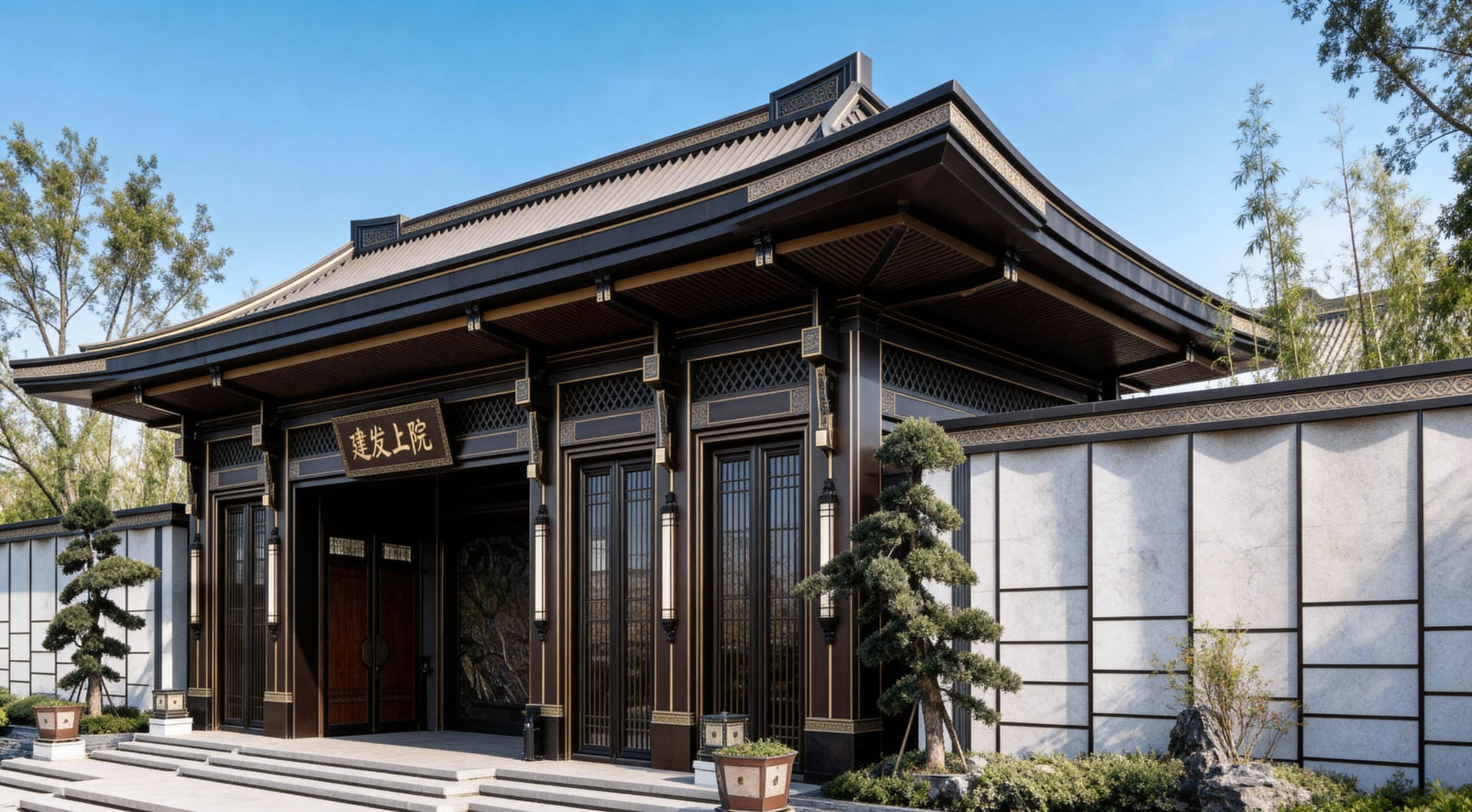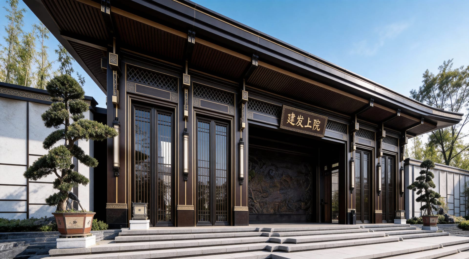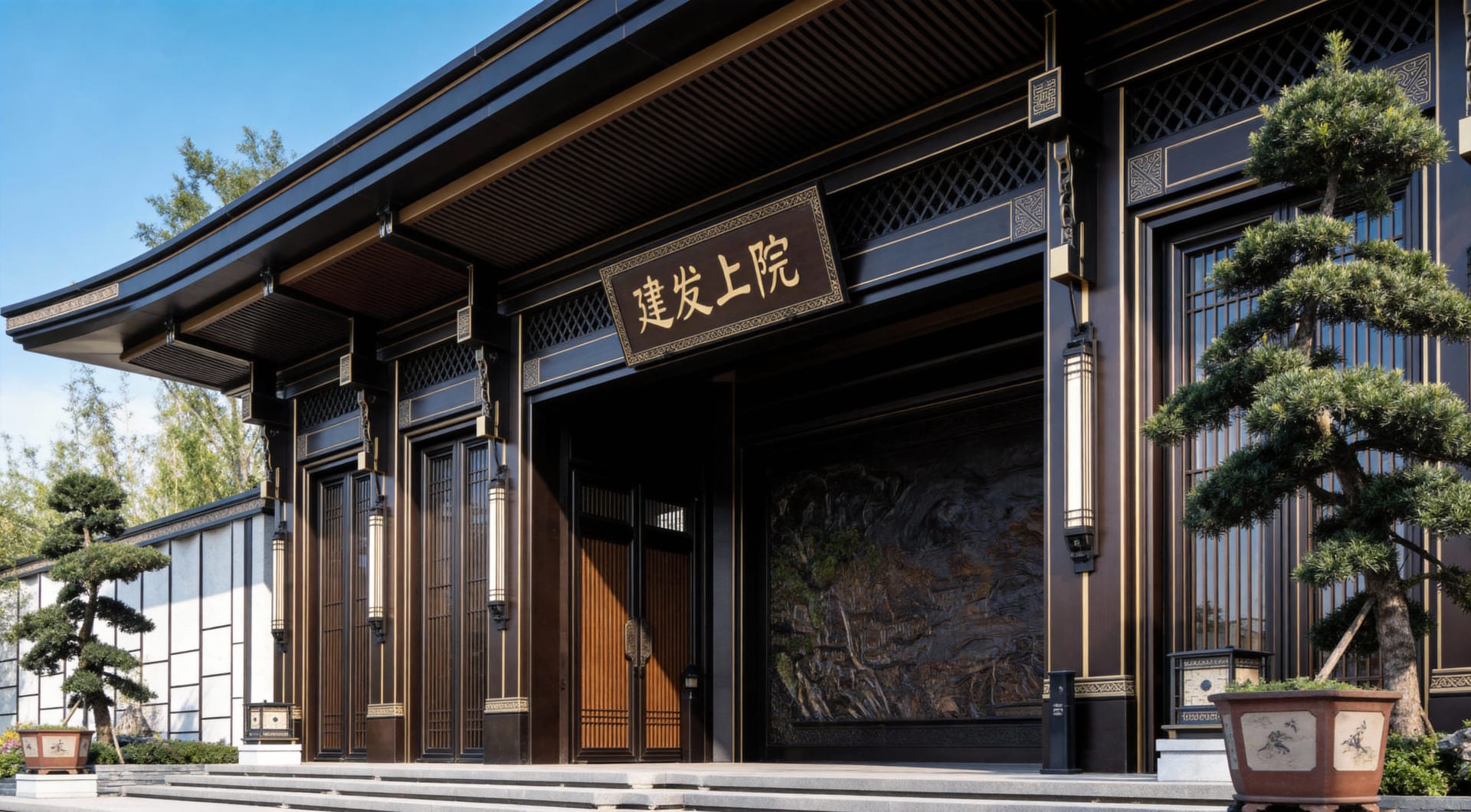 The Main Entrance Project of C&D·Upper Courtyard is led by the C&D Properties Design Team for its New Chinese style positioning, with the ODE Design Team responsible for the design. Leveraging our years of integrated design and construction capabilities in the decoration field, as well as our profound heritage and expressive strength rooted in Eastern culture, we undertook the detailed design and implementation of the entrance gates in this area. Taking the “gate-hall system” of traditional Chinese courtyard houses as the blueprint, we reconstructed core components such as the main gate and overhanging eaves using modern metal materials, integrated traditional Chinese decorative patterns, and presented the canal culture-themed scene via forged copper reliefs. Through the interplay of solid and hollow metal components and layered lighting, we preserved the ritual charm of traditional architecture while endowing the space with an elegant vibe favored by contemporary tastes.