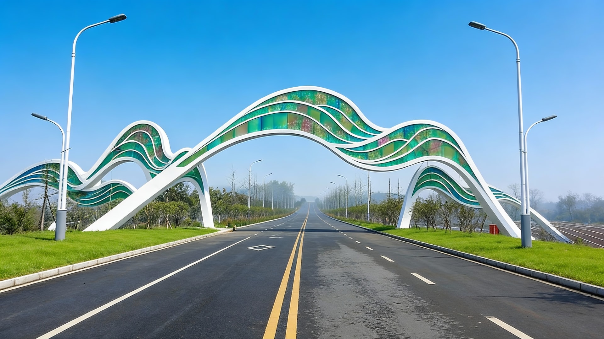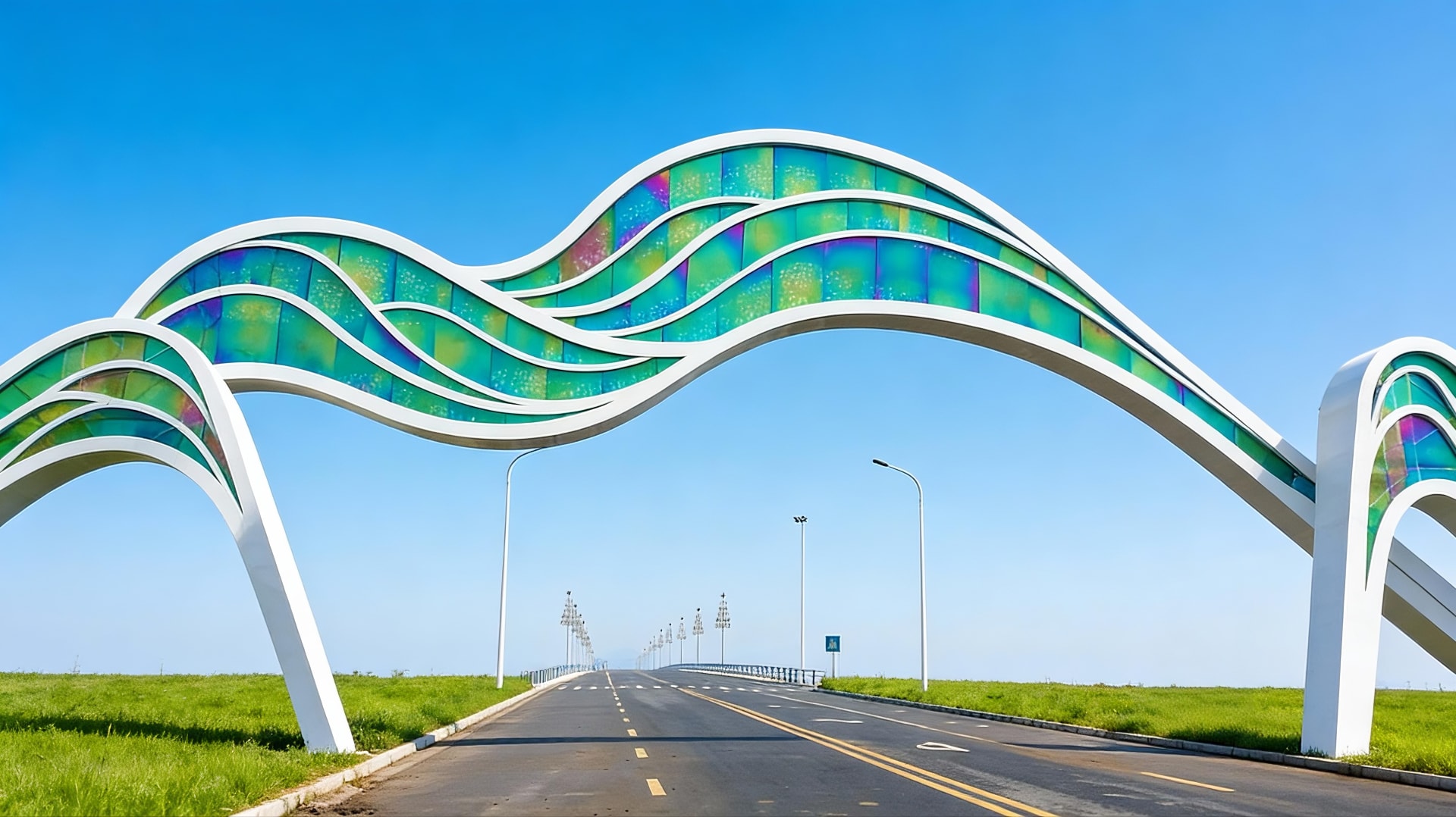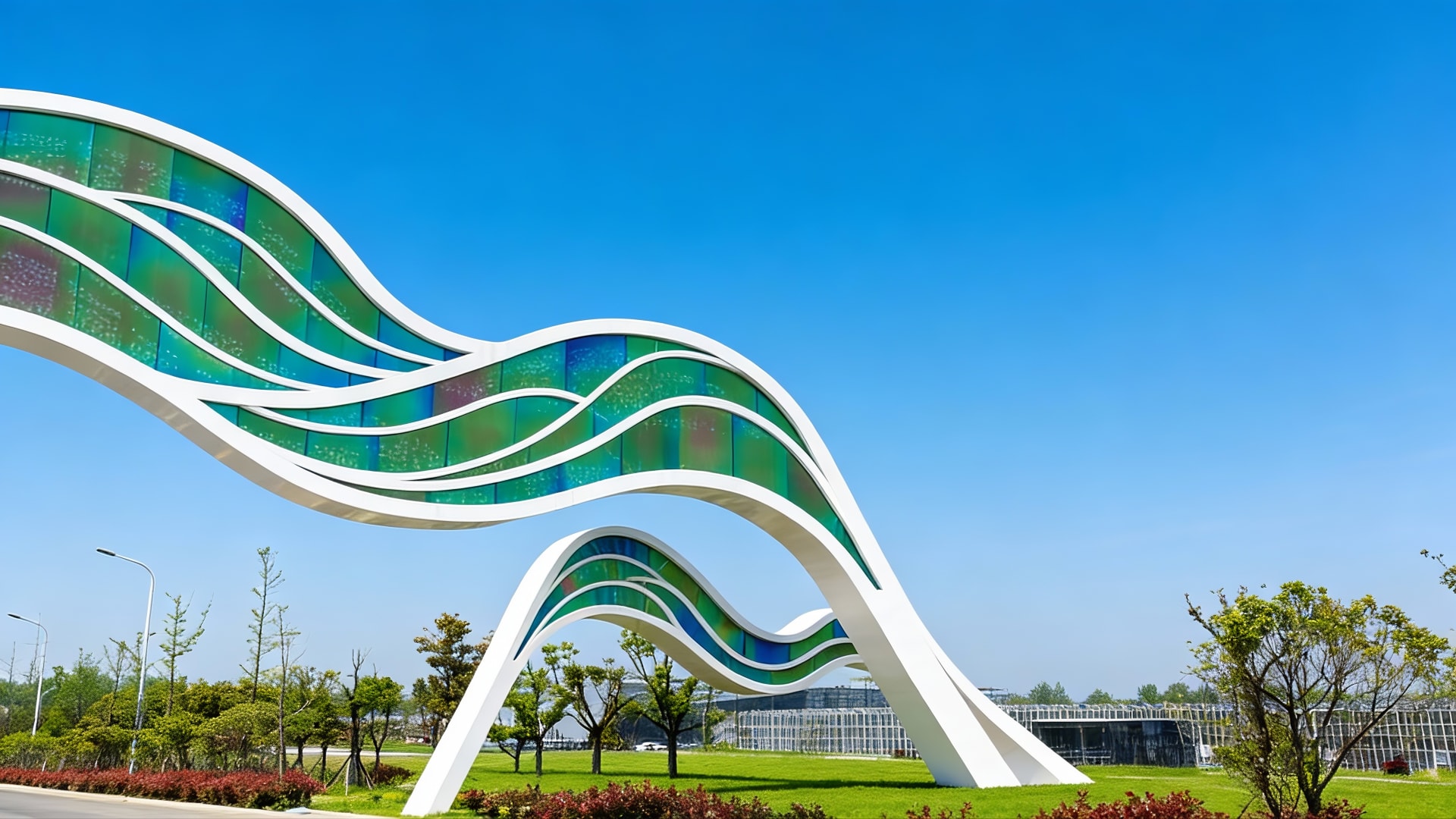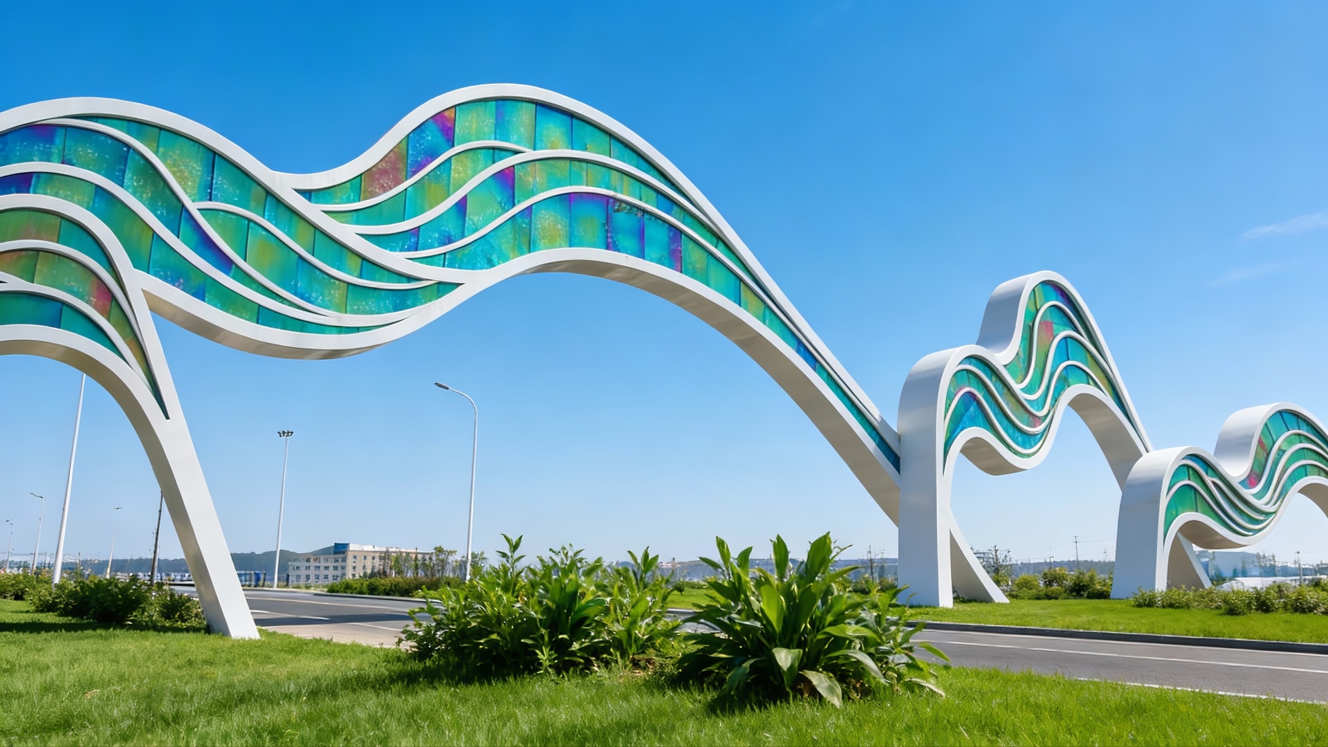 Inspired by fluid, flowing lines, this rainbow-hued entrance gate boasts a concise yet dynamic design that integrates functional signage with striking visual appeal. Our team delivered the full scope of work including planning, fabrication and on-site installation, endowing the site with a highly distinctive gateway landmark through its elegant, modern silhouette.