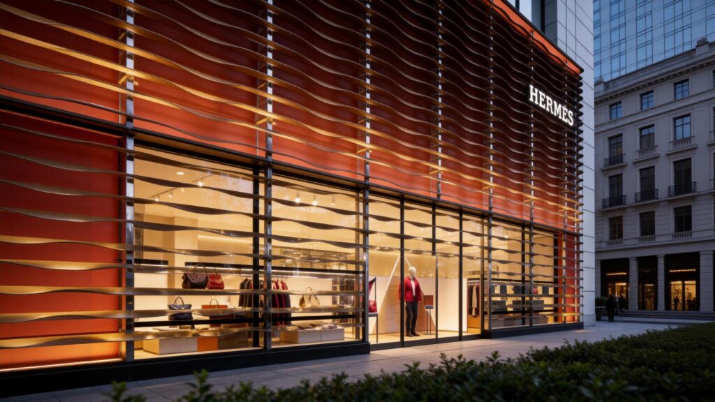 Designed by RDAI Paris Architectural Firm, a long-term collaborator of Hermès, the facade employs fluid wave-shaped metal panels to echo the aesthetic of Hermès’ century-old leather craftsmanship. We adopted the core technology of stainless steel forging + titanium plating, undertaking the full-process development and production of nearly 2,000 panels. With precise control to ensure the arc length error of each panel is no more than 1 millimeter, we successfully transformed the design concept into a building skin that combines artistic appeal with engineering precision, perfectly fulfilling Hermès’ stringent standards for ultimate aesthetics and quality.